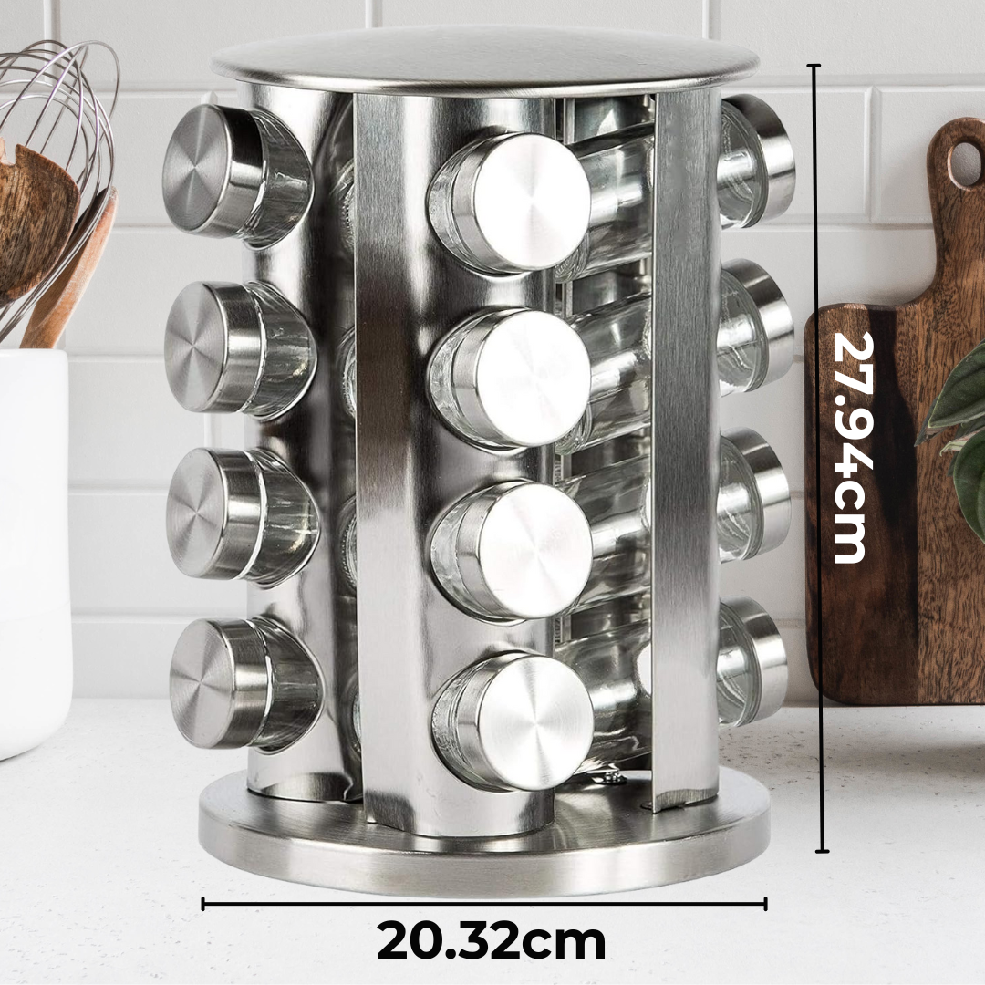 Rotirajući Stalak za Začine od Inoxa – Red, Stil i Ukus u Jednom! ✨ Unesite red i eleganciju u svoju kuhinju uz ovaj luksuzni stalak za začine koji kombinuje funkcionalnost i moderan dizajn.