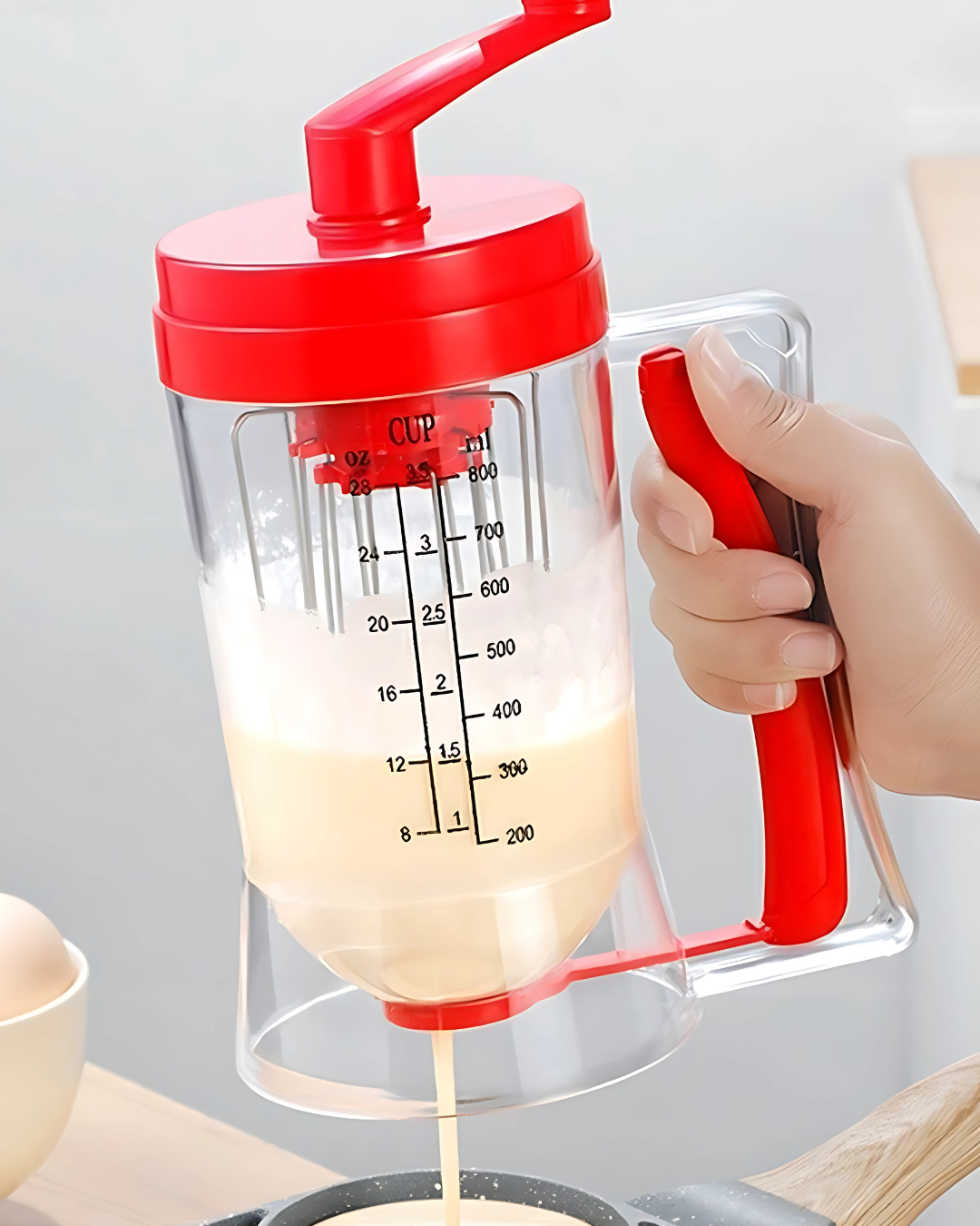 Zaboravite na prosipanje smese, prljave činije i nejednake palačinke! Ovaj aparat za palačinke sa ručnim mikserom omogućava vam da brzo izmešate smesu i precizno je sipate direktno na tiganj – kao profesionalac.
