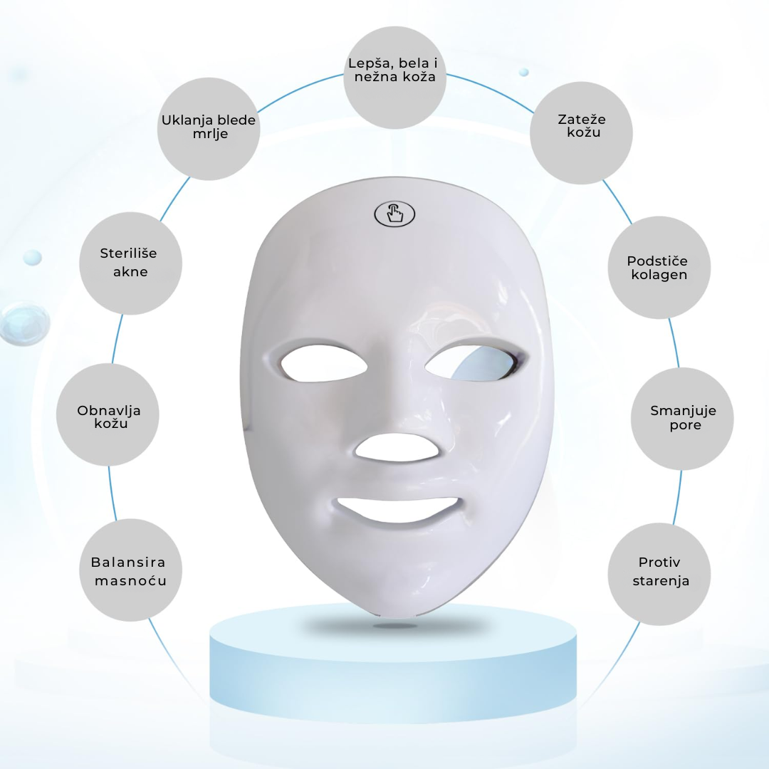 Naša LED maska sa 7 boja svetlosne terapije donosi vam najnoviju beauty tehnologiju koja vidljivo menja izgled vaše kože.